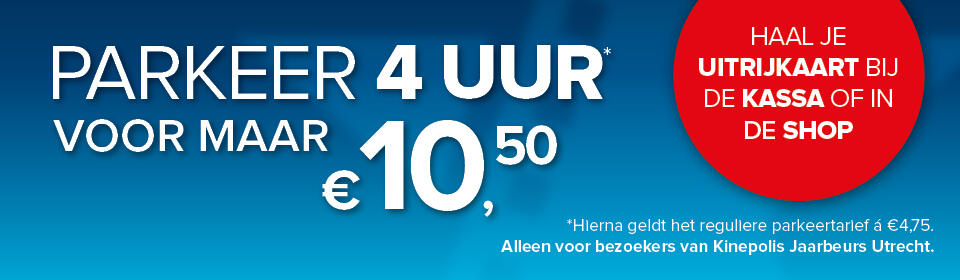 Per 12 maart 2020 is parkeren bij Kinepolis Jaarbeurs Utrecht niet langer gratis. Wij komen onze bezoekers daarom tegemoet met een flinke korting: 4 uur parkeren voor slechts € 10,50. Dan heb je dus nog genoeg tijd over voor nog een hapje of drankje na de film!